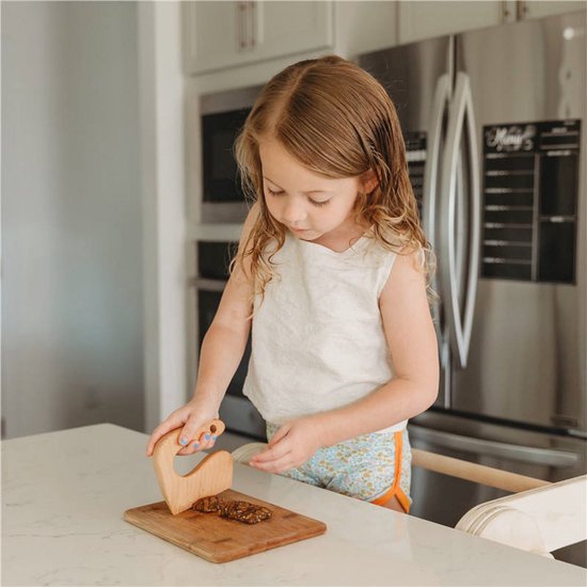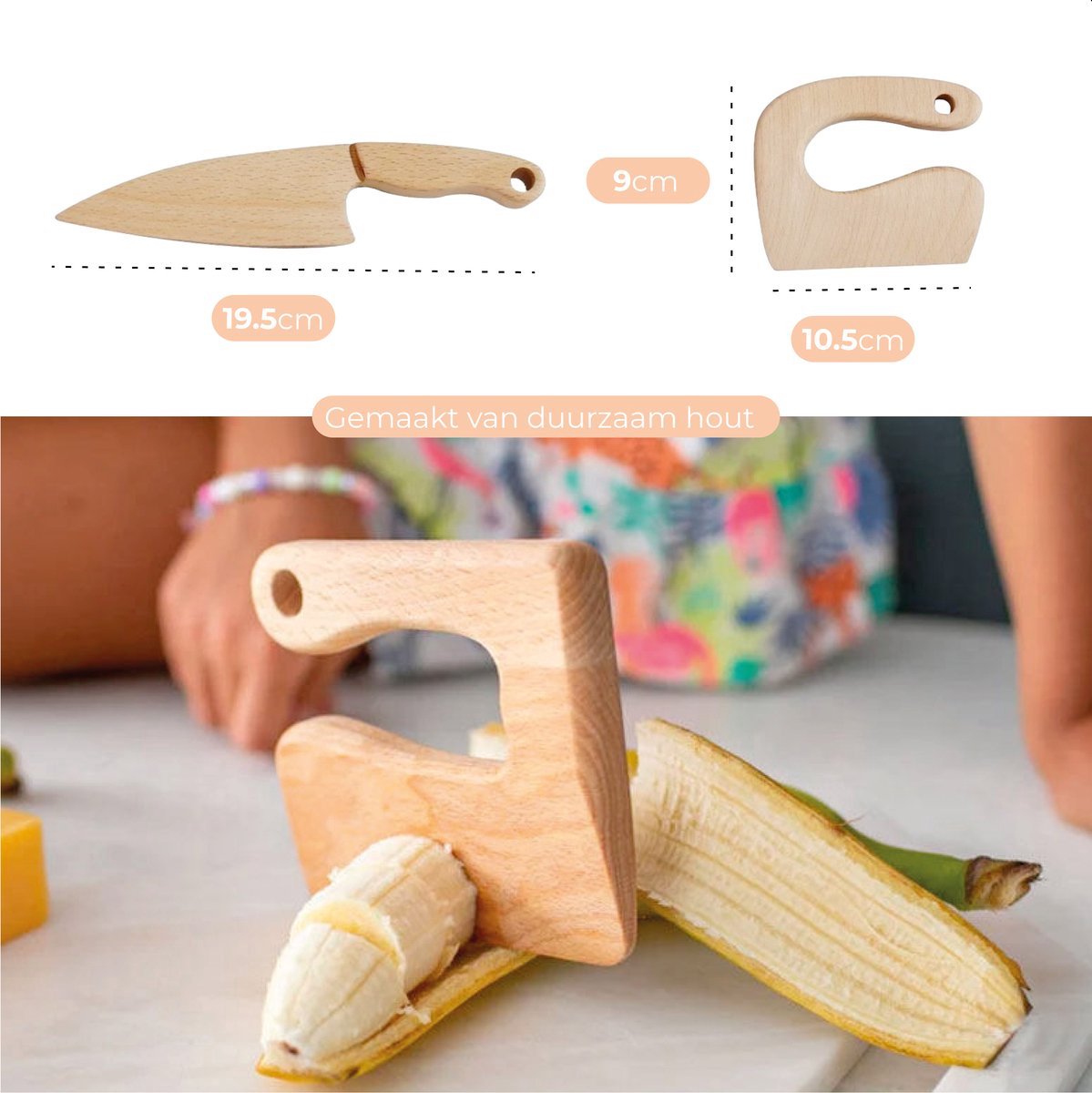 Veiligheid is natuurlijk het belangrijkste aspect van deze kindermessenset. De vier messen zijn speciaal ontworpen met een kindvriendelijk design en afgeronde punten, zodat ze veilig in gebruik zijn. De snijplank en snijaccessoires zorgen ervoor dat alles stevig op zijn plek blijft liggen tijdens het snijden.
