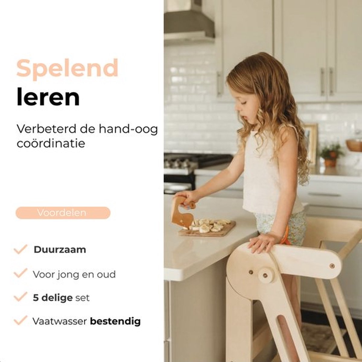 Ontdek onze 5-delige kindermessenset/kiddicutters die speciaal is ontworpen voor de jonge keukenprinsen en -prinsessen. Met deze set leren kinderen op een veilige en leuke manier de basis van het koken. Snijden, hakken en schillen wordt kinderspel dankzij de bijgeleverde snijplank en drie handige snijaccessoires.