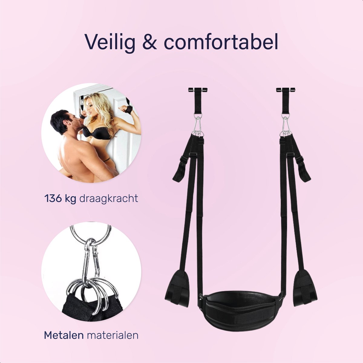 Ontdek nieuwe hoogtes met de Jespro Sex Schommel! Deze schommel is ontworpen voor ultiem comfort en veiligheid, met een pluche zitje en metalen riemen die zorgen voor een stabiele en sensuele ervaring. Dankzij de eenvoudige over-de-deur installatie en een draagkracht van 136 kg kun je direct aan de slag, waar en wanneer je maar wilt. En maak je geen zorgen over discretie – de schommel wordt volledig anoniem geleverd.