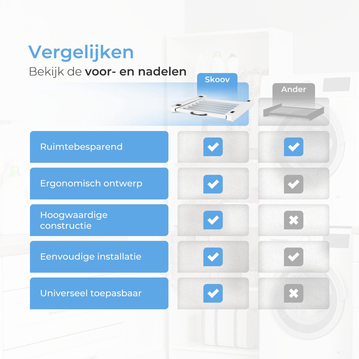 Bestel de Universele Stapelkit van Skoov voor wasmachine en droger vandaag nog en optimaliseer je wasruimte met gemak en stijl!