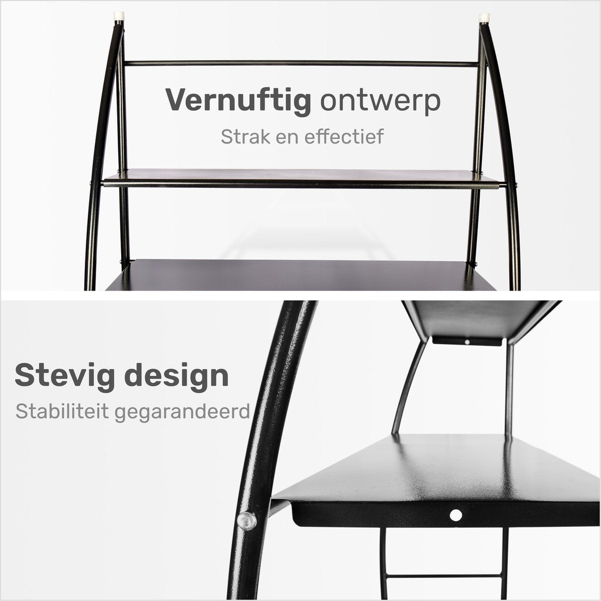 Efficiënt, ruimtebesparend en ideaal voor in de badkamer of het toilet: de LBB wasmachine ombouw! Berg eenvoudig handdoekjes, decoratie, wasmiddelen en andere spullen op in het universele opbergrek. Het zwarte elegante design staat in elke ruimte en is met de waterbestendige coating bestand tegen roestvorming. Met de extra ophanghaken en 3 functionele planken met elk een draagkracht van maximaal 30 kg, heb jij direct extra ruimte zonder dat het rek ruimte in beslag neemt.